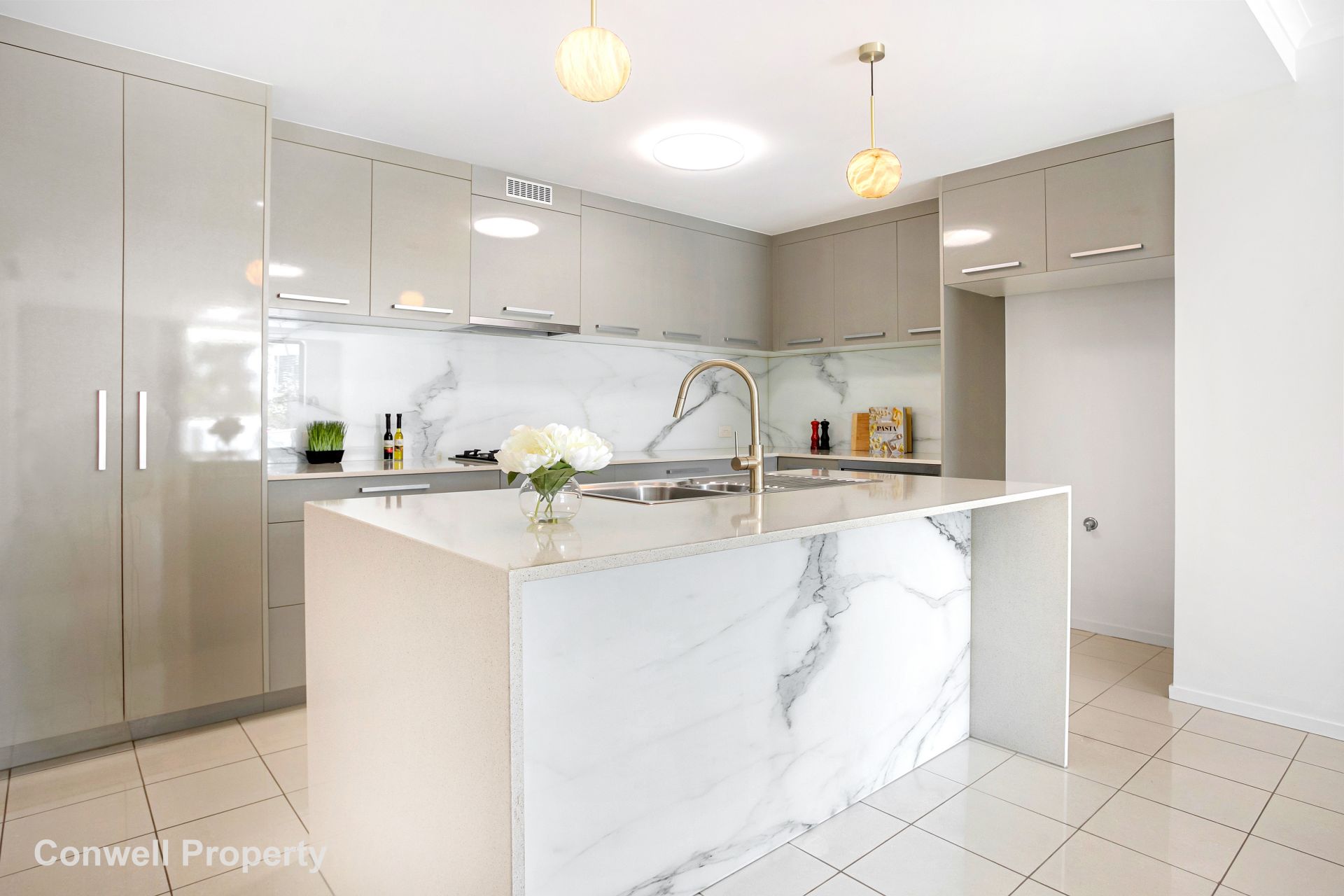 Long wide benchtops, an abundance of cupboards and high-quality appliances in the kitchen make meal preparations a dream and there's also a breakfast bar or convenience