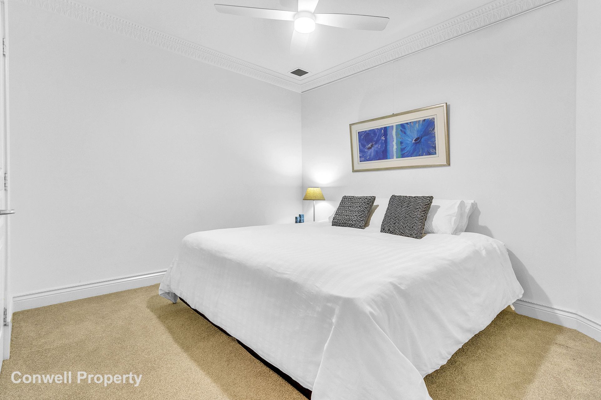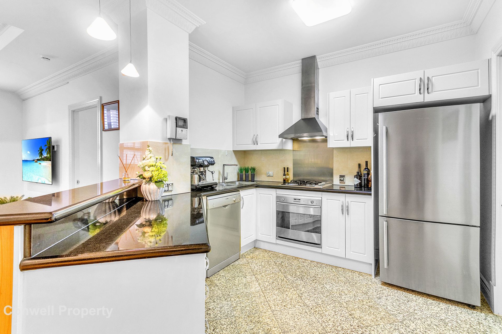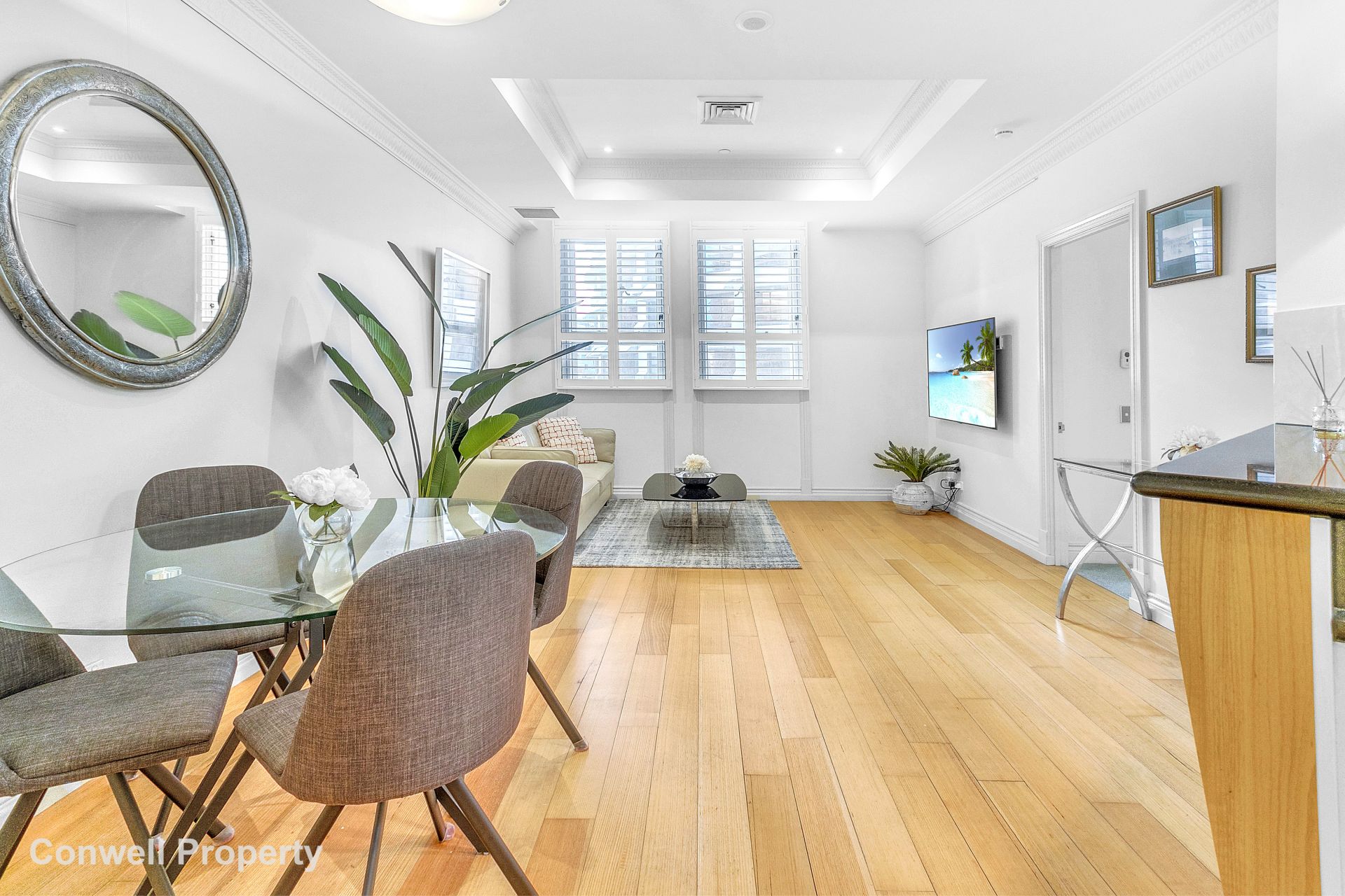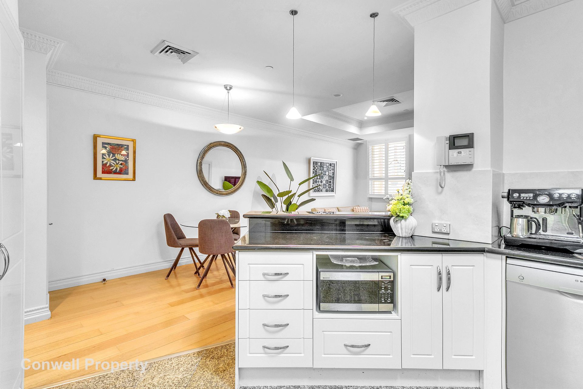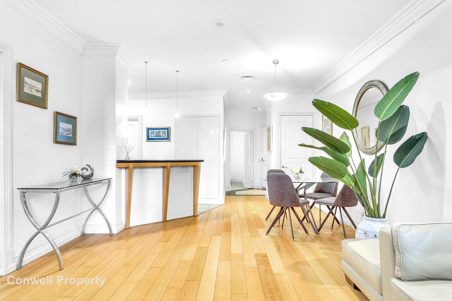 High coffered ceilings, stunning ornate cornices and white plantation shutters provide a classy touch, while both easy care and comfort are combined with timber flooring throughout the living area and warm carpets in the bedrooms, giving you the best of both worlds for all seasons. Ducted air-conditioning, ceiling fans, security intercom, and many storage options all add to the benefits of modern living in this classic building.