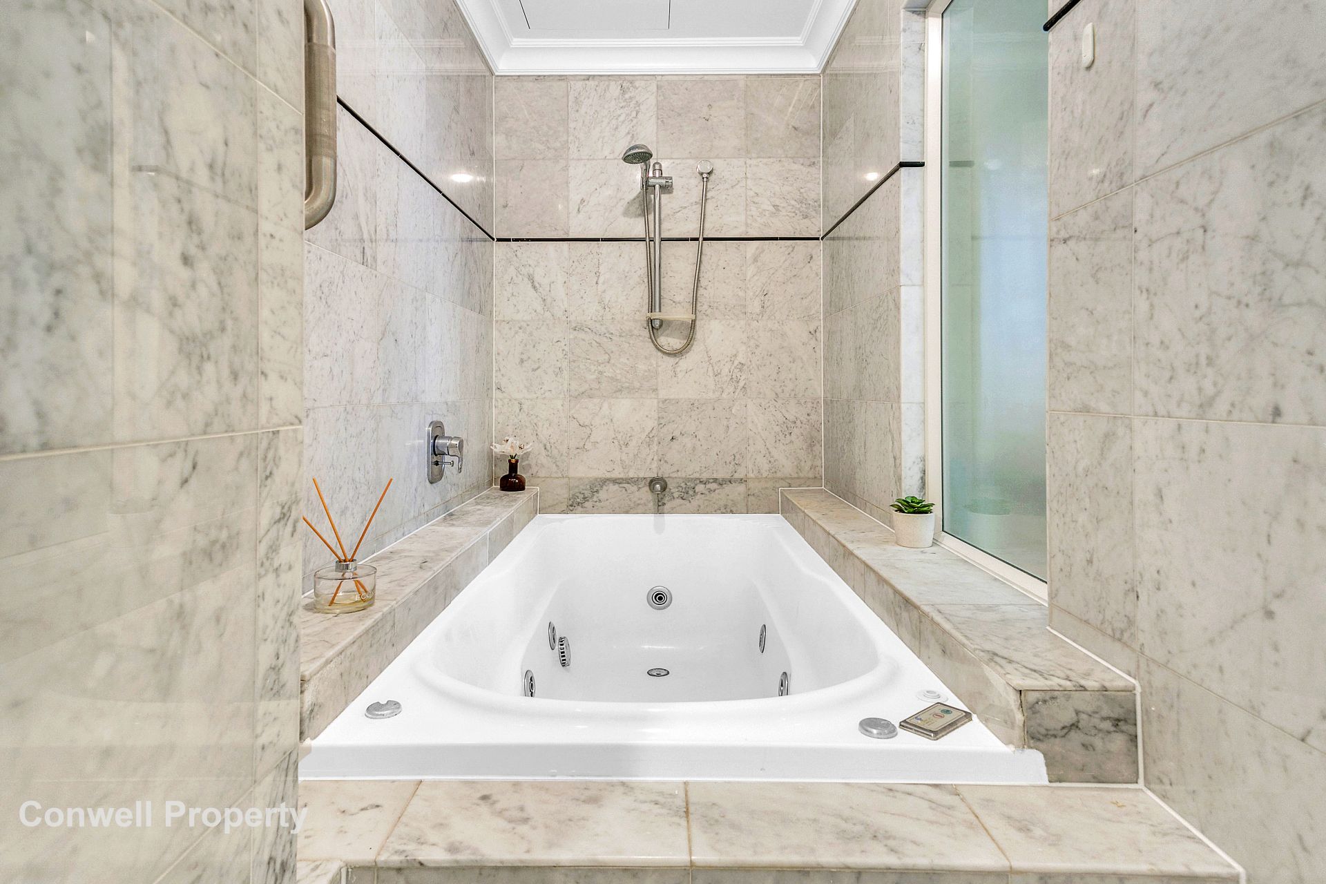 This well-designed floorplan allows space and privacy in between both bedrooms which are located at either end of the apartment - each with their own separate gorgeous marble bathroom - one even including a huge, luxurious elevated, deep pampering spa bath and double basins - whilst the other has an easy walk-in shower and additional linen storage cupboards. The second toilet is separate as a powder room providing convenience for guests.