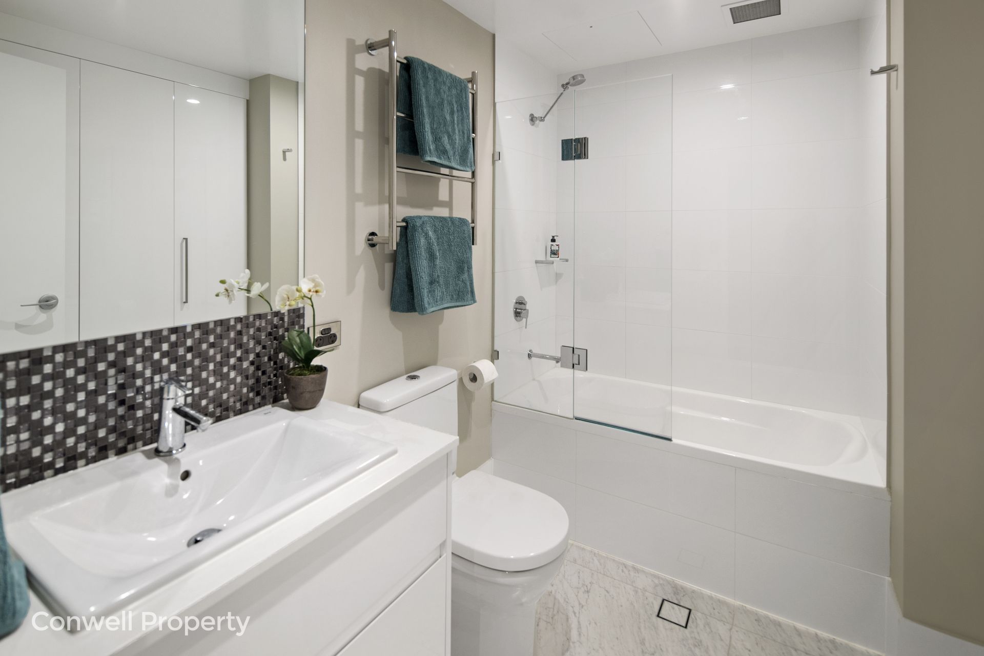 The finest of fixtures and fittings have been crafted into this renovation which includes plush carpet, rich marble tiling, high-quality window coverings, heated bathroom towel rails, full deep bath, superb kitchen with stone bench-tops and an abundance of cupboards as well as stunning bathrooms and cabinetry all combining to give a feeling of living in a real home or very chic home-away-from-home.