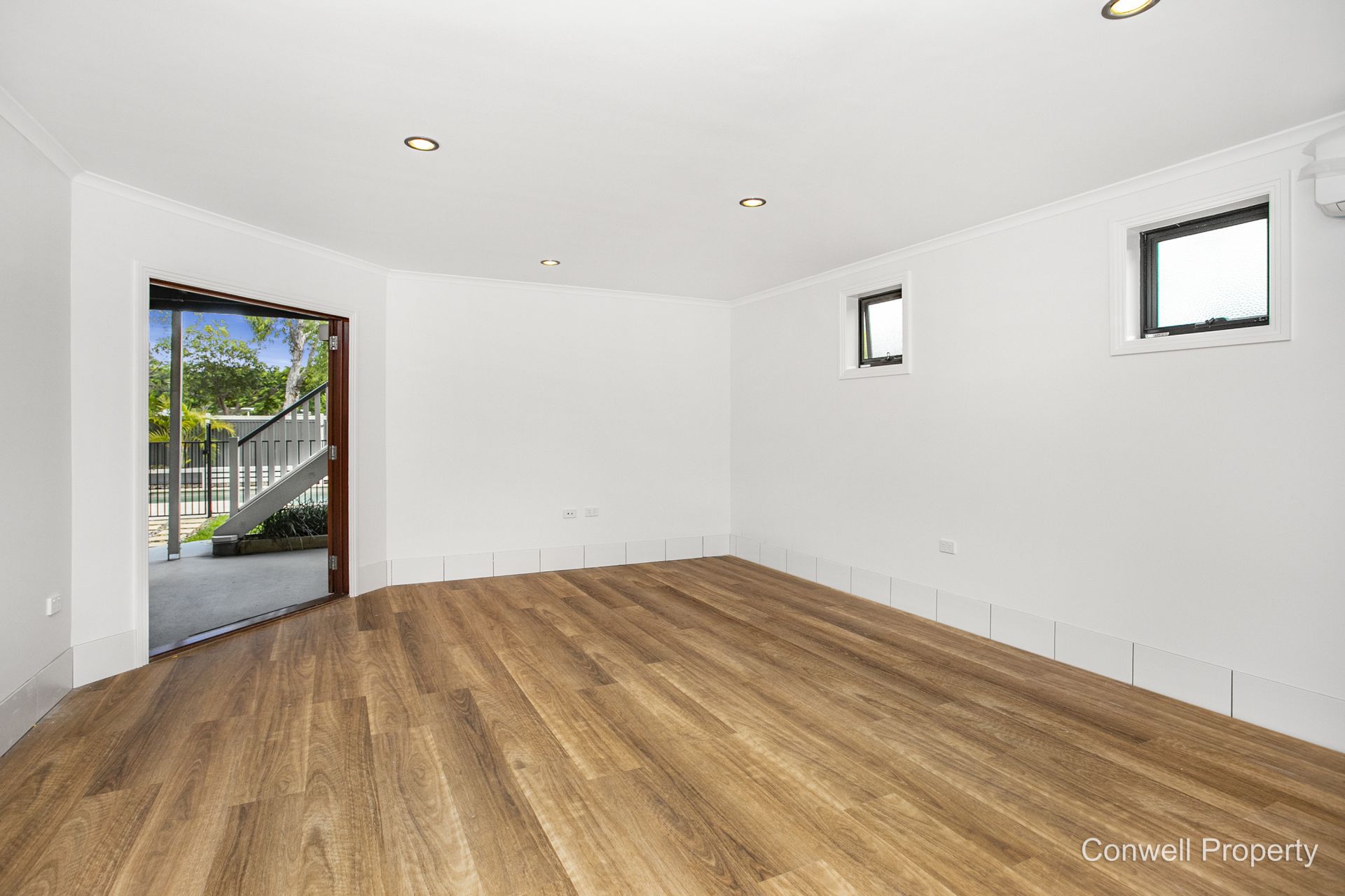 The 5th bedroom is located downstairs with a new two-way bathroom adjacent to its own rumpus space and out to the covered BBQ area and through to the pool.
