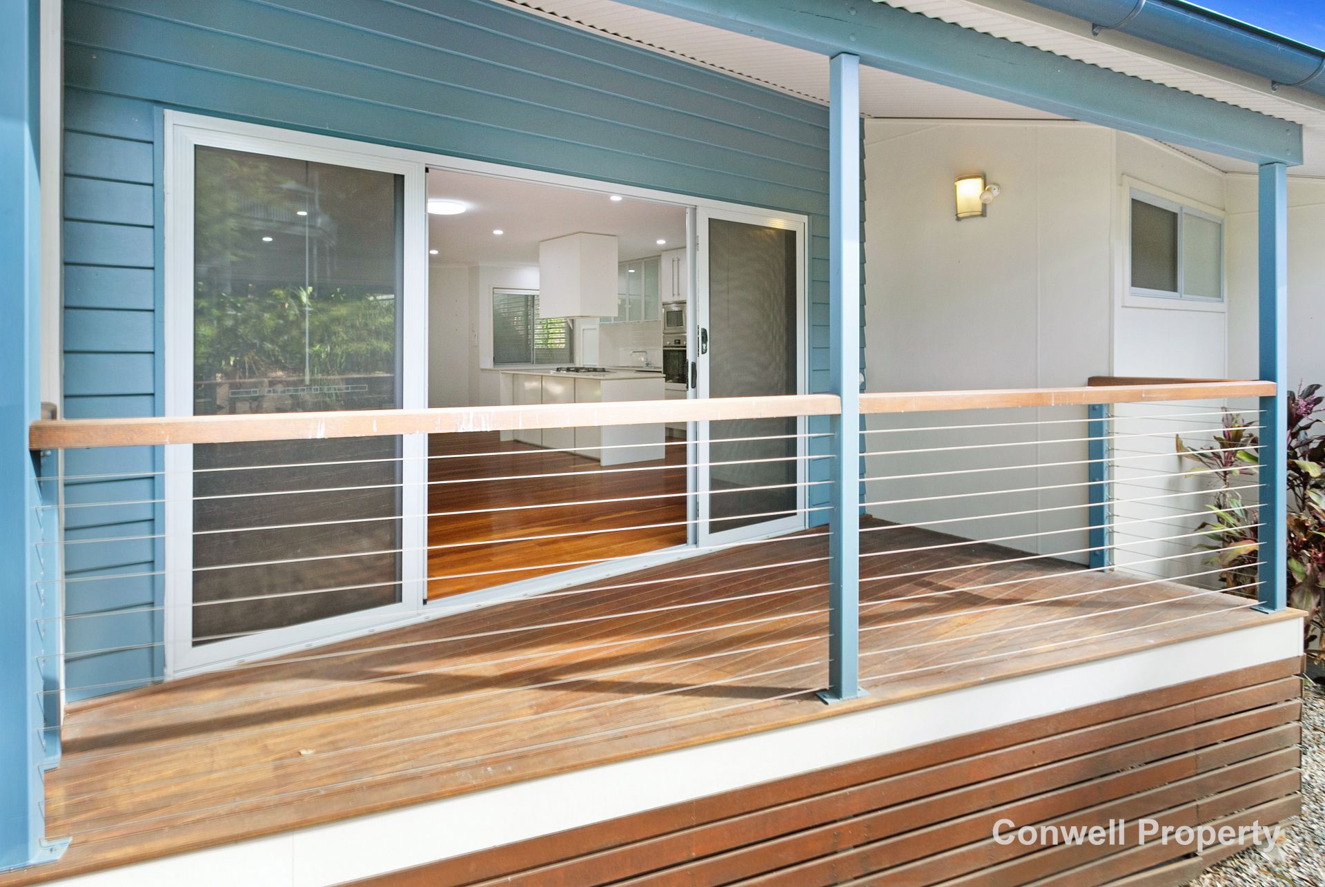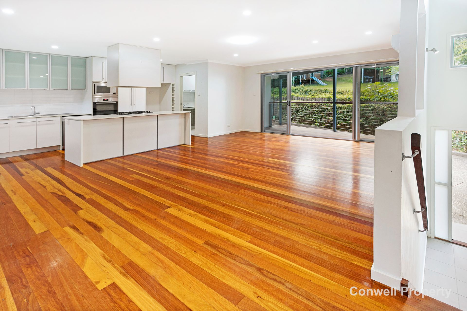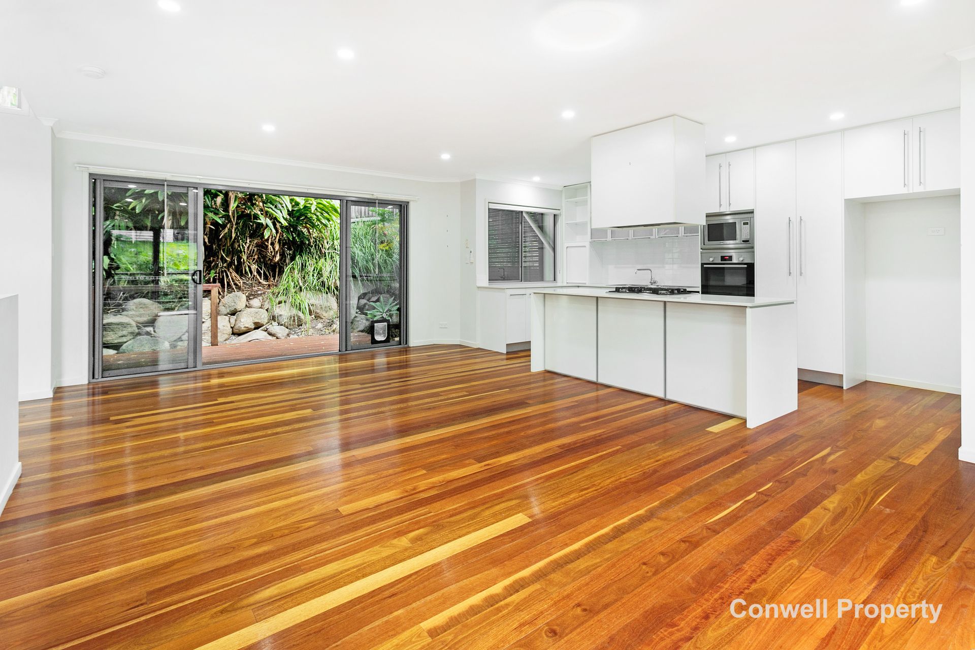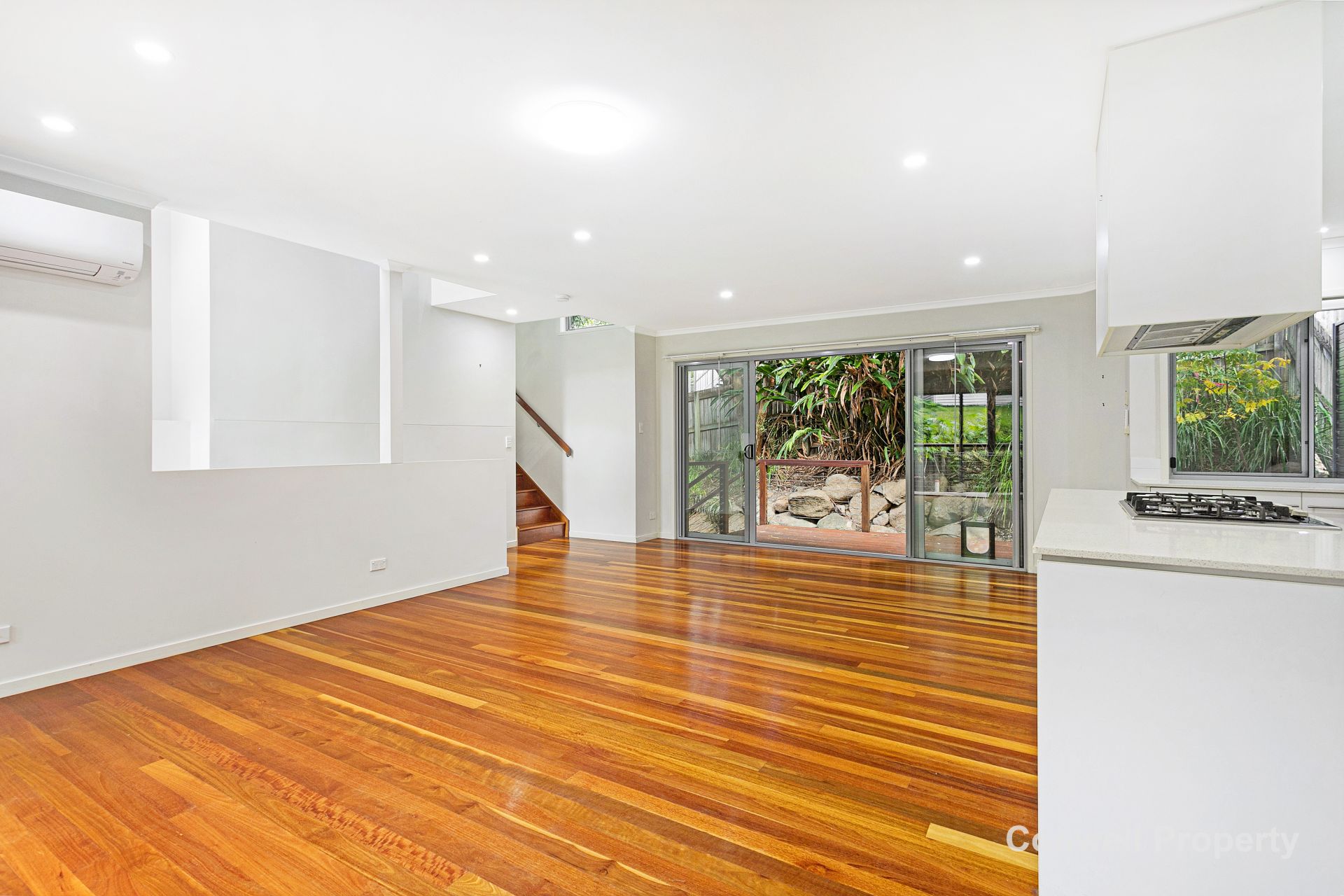 Secluded at the back of the development and surrounded by nature, this spacious split level designed townhouse is a lovely place to call home. The living area, lined with polished floorboards features 2 decks, with one leading to the fully fenced courtyard (which has side access) – a lovely secluded and serene retreat.