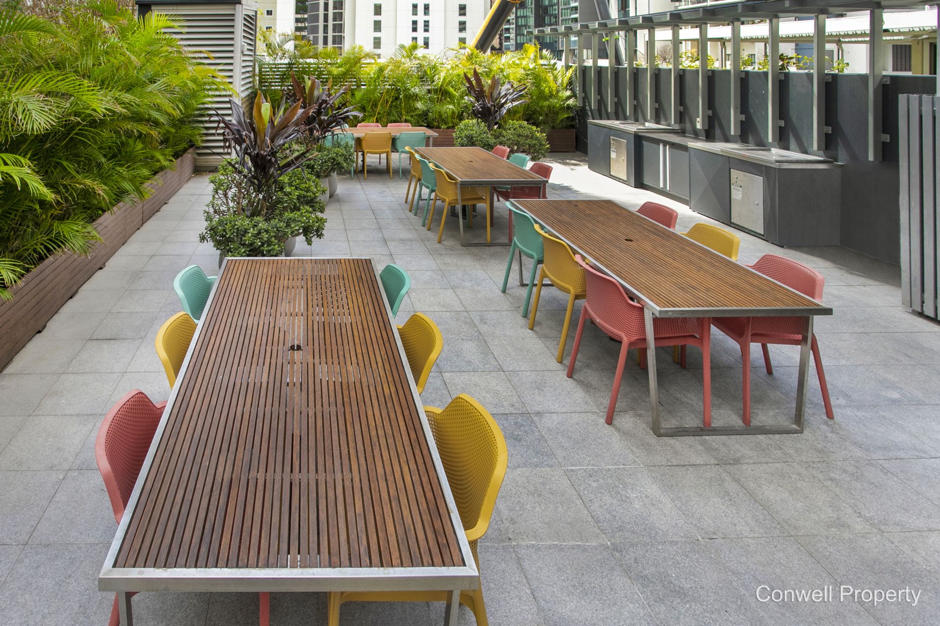 Living in M on Mary provides a fabulous lifestyle at your fingertips. Cross River Rail is directly next door and the building location is nestled between the new Queens Wharf precinct, the Waterfront Pier development, Botanical Gardens, QUT and the Queens St Mall. Everything you need from shopping to dining to entertainment to medical all so close. Resort-style amenities include a refreshing outdoor pool, large BBQ relaxation area, fully equipped Gym and sauna.