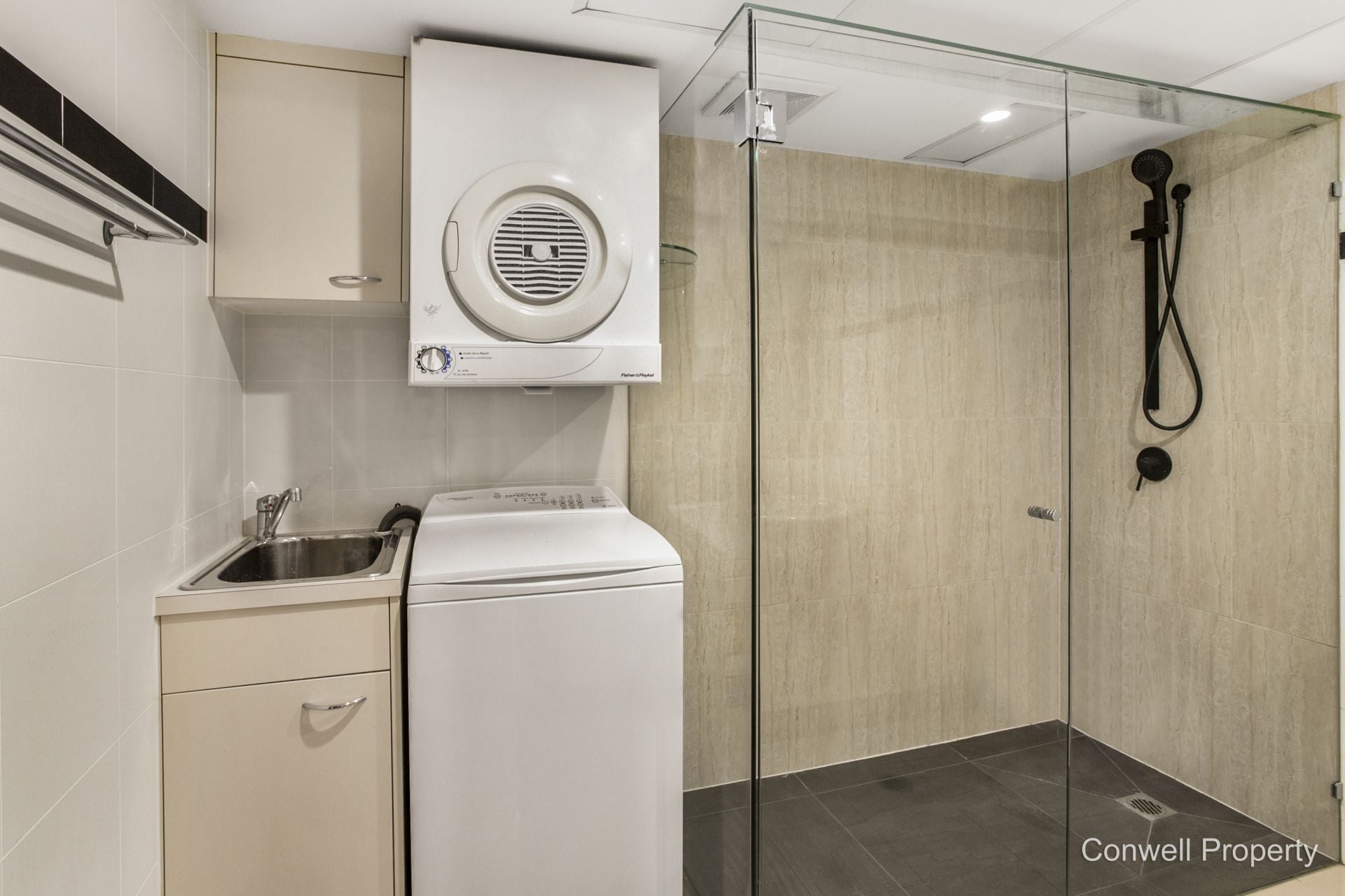 The newly renovated bathroom includes a huge shower and long vanity and cupboards and conveniently includes the laundry and quality appliances.
