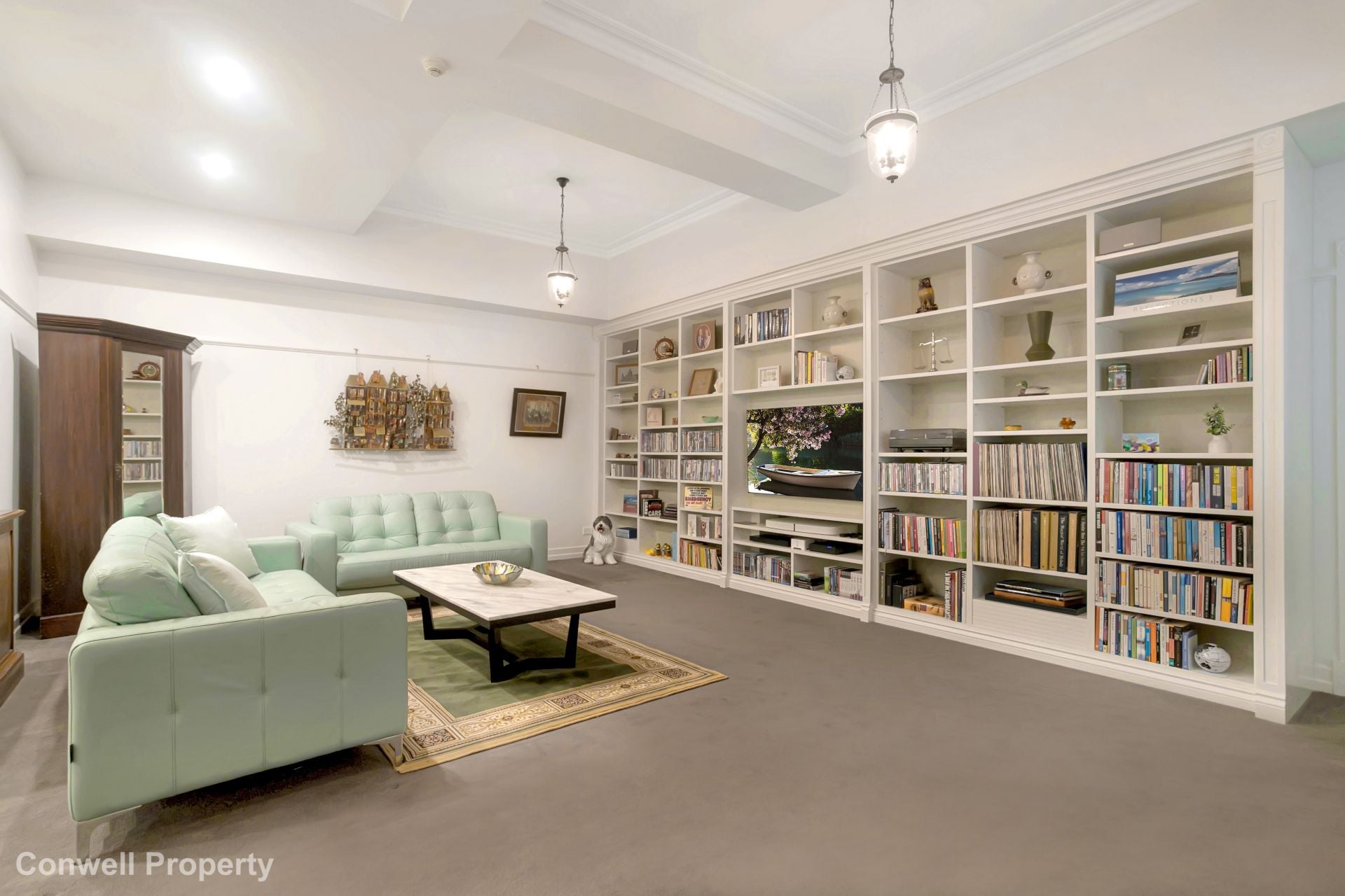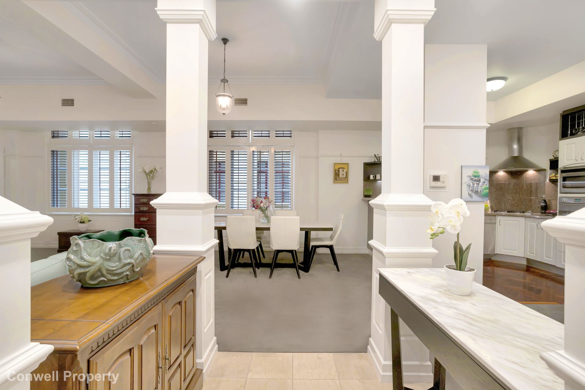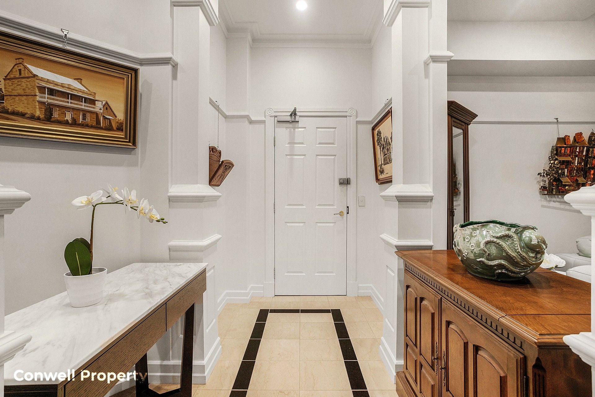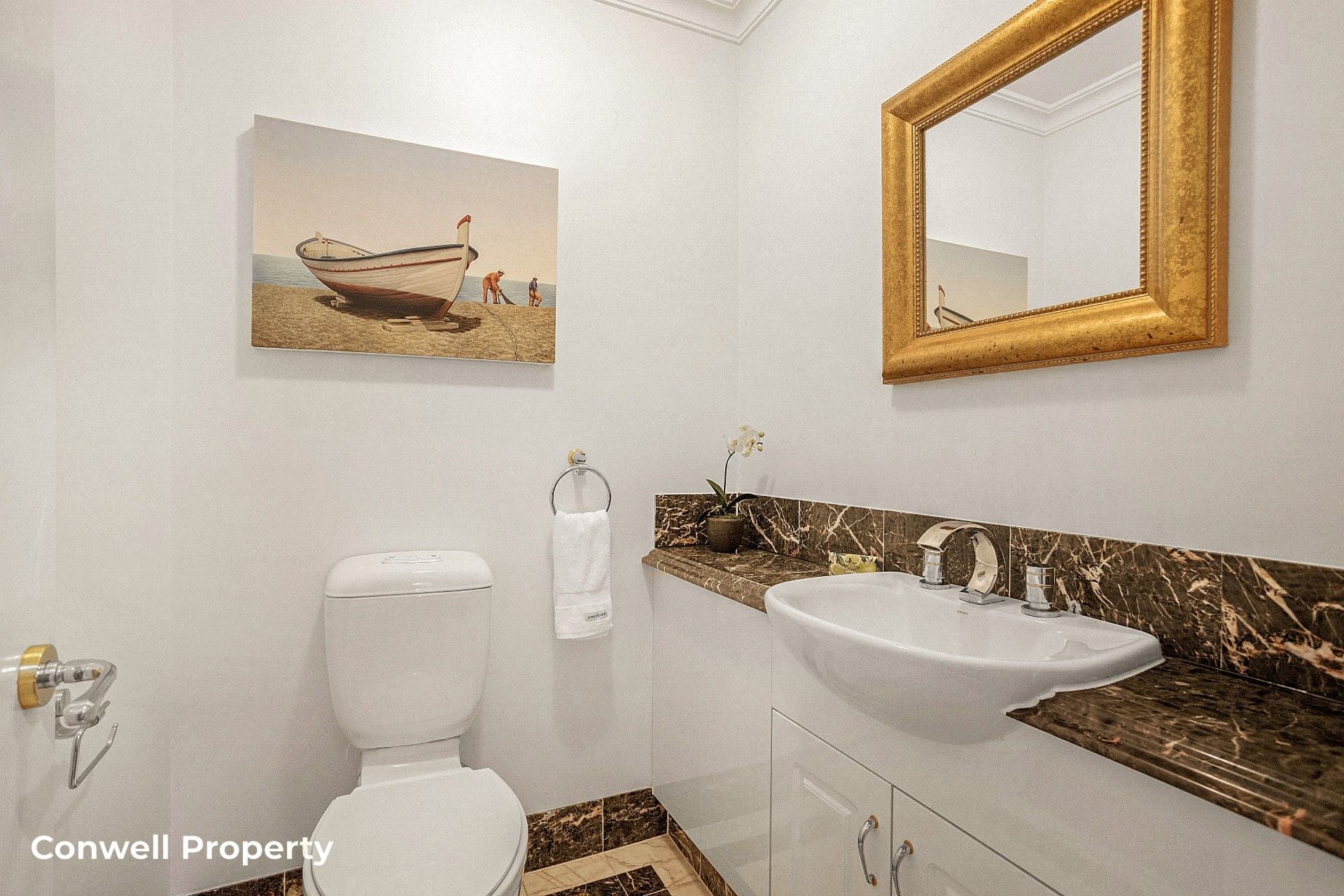 The master bedroom suite area includes an oversized marble-tiled ensuite, a luxurious deep bath and long marble benchtops with double basins and a spacious shower. The 2nd bedroom is serviced by another marble-tiled bathroom with bath, while the 3rd bedroom, accessed through double doors, is positioned perfectly to be converted to an office or media room at your pleasure.